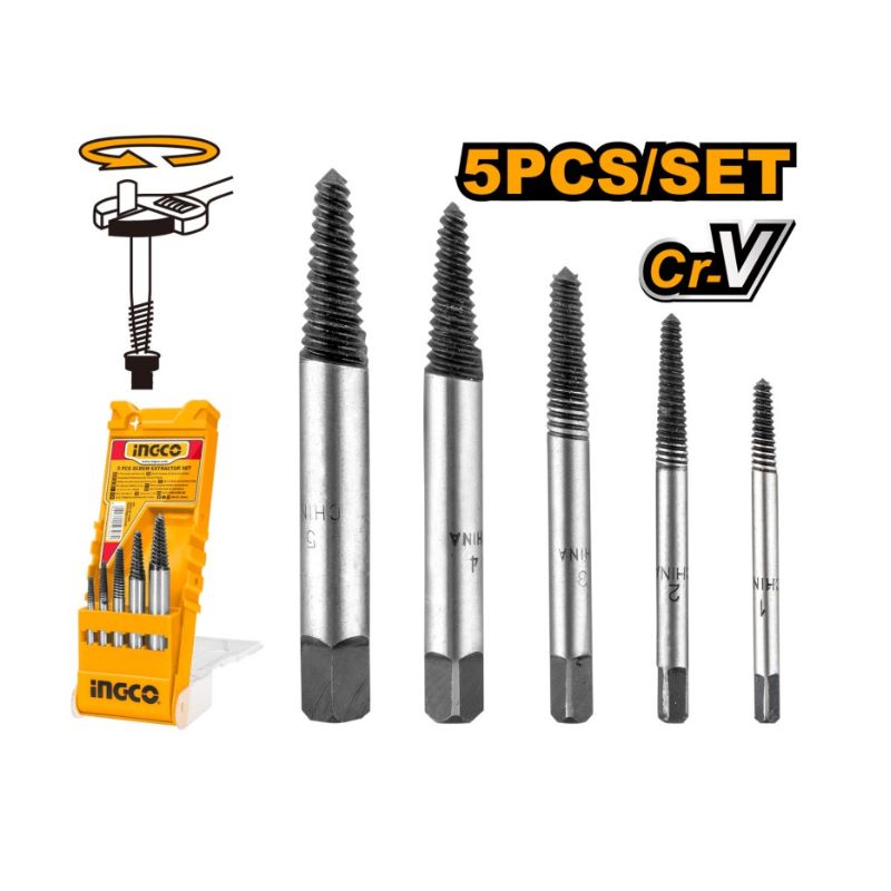 Set 5 Estrattori per Viti Danneggiate INGCO in Cr-V - ASE008